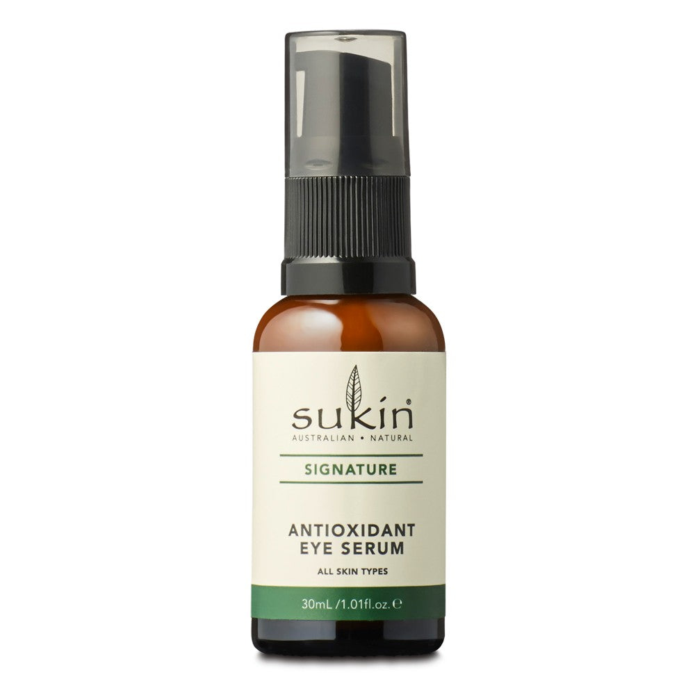 Did you know that fine lines around the eyes are some of the first signs of ageing on the face? Fight the signs of premature ageing with sukin’s fragrance free, Antioxidant Eye Serum! A blend of Plant Extracts including Aloe Vera, Cucumber and Burdock, rich in essential fatty acids offer light hydration to the delicate eye area, while oils from Rosehip, Evening Primrose and Borage help to fight the signs of ageing, reduce the appearance of fine lines and improve the skin’s texture!